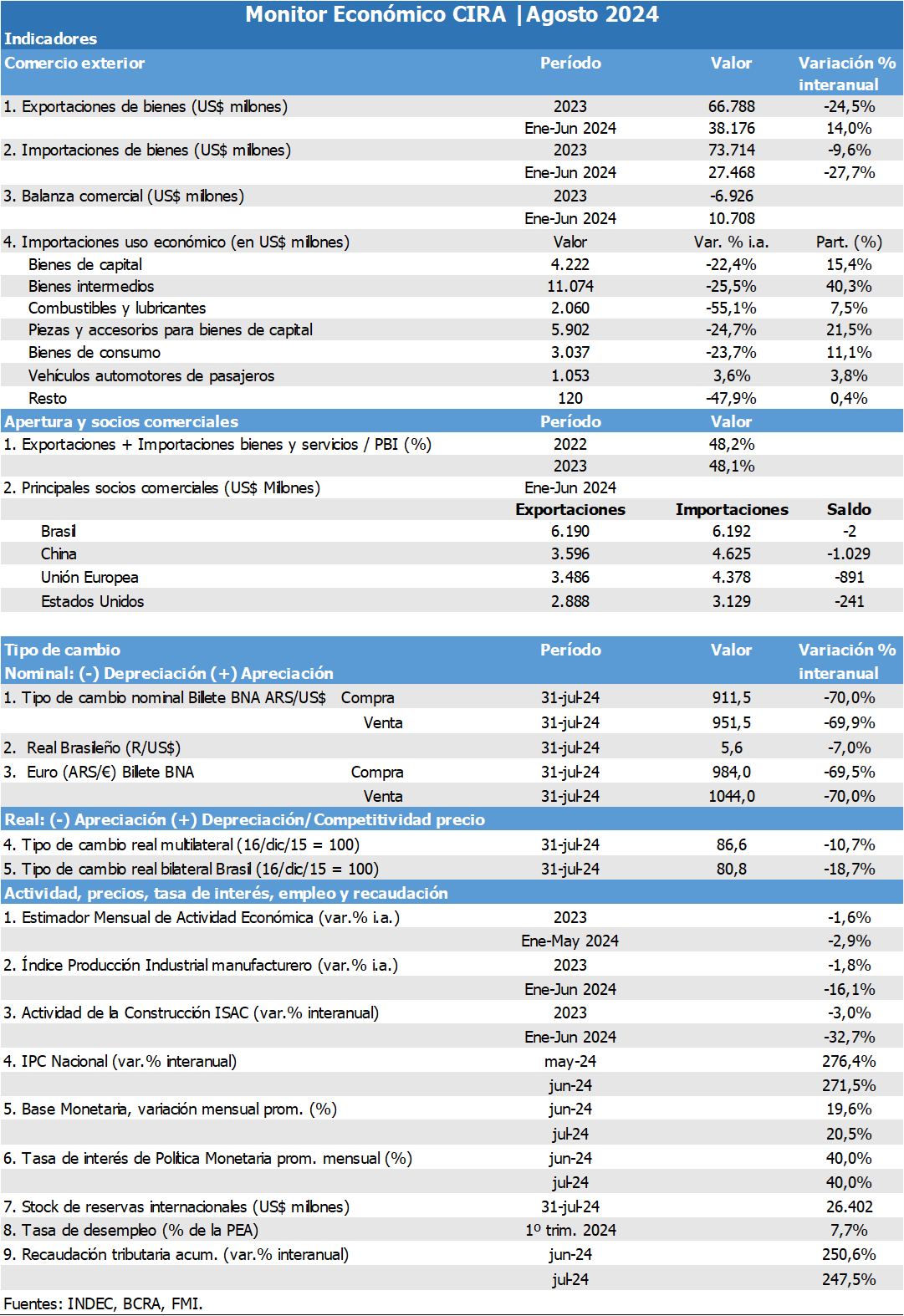 Monitor Económico CIRA | Agosto 2024